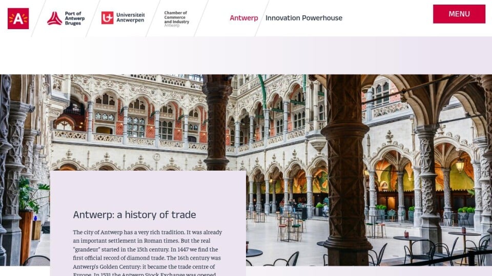 The city of Antwerp has a very rich tradition. It was already an important settlement in Roman times. But the real “grandeur” started in the 15th century. In 1447 we find the first official record of diamond trade. The 16th century was Antwerp’s Golden Century: it became the trade centre of Europe. In 1531 the Antwerp Stock Exchange was opened, genuinely called “the mother of all stock exchanges”.