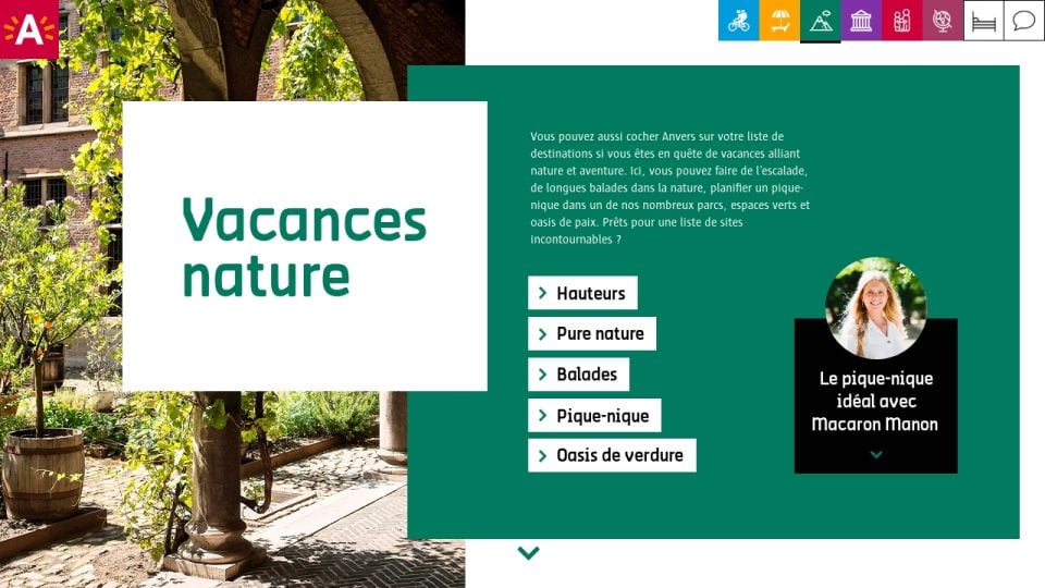 Vous pouvez aussi cocher Anvers sur votre liste de destinations si vous êtes en quête de vacances alliant nature et aventure. Ici, vous pouvez faire de l’escalade, de longues balades dans la nature, planifier un pique-nique dans un de nos nombreux parcs, espaces verts et oasis de paix. Prêts pour une liste de sites incontournables ?