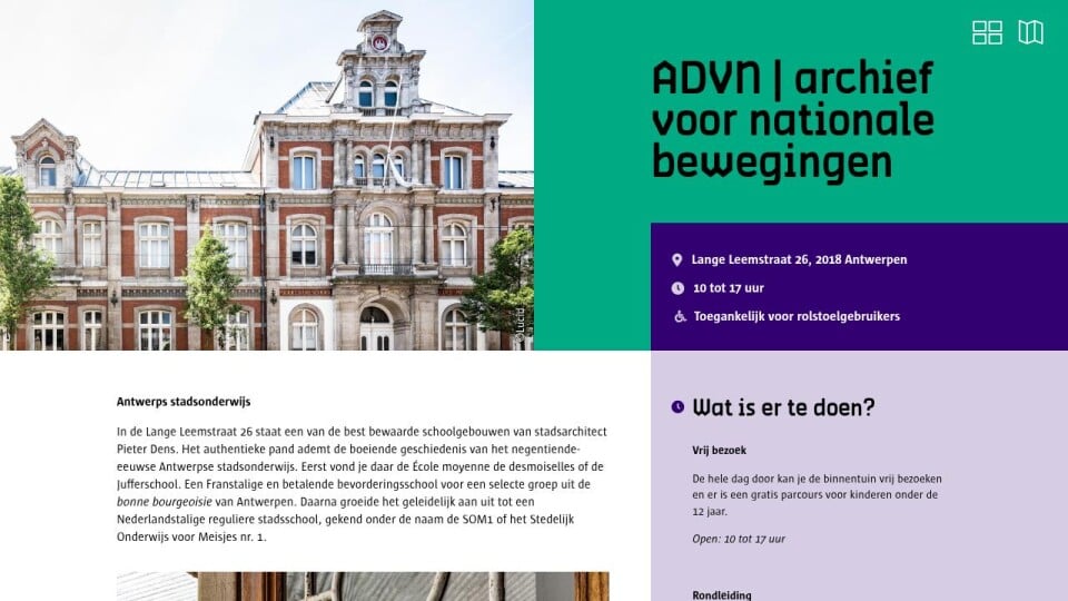 De omschakeling van Franstalig stadsonderwijs naar tweetalig onderwijs en later volledig Nederlandstalig onderwijs duurde in Antwerpen meer dan 35 jaar. Diat en nog heel wat andere interessante weetjes ontdek je tijdens een van de drie gegidste wandelingen door het gebouw.