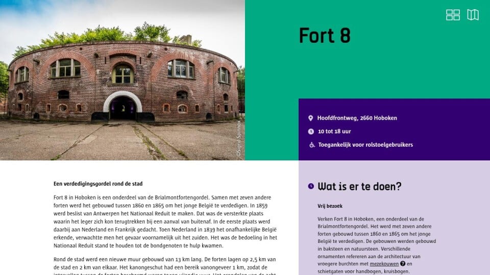 Verken Fort 8 in Hoboken, een onderdeel van de Brialmontfortengordel. Het werd met zeven andere forten gebouwd tussen 1860 en 1865 om het jonge België te verdedigen. De gebouwen werden gebouwd in baksteen en natuursteen. Verschillende ornamenten refereren aan de architectuur van vroegere burchten met mezekouwen en schietgaten voor handbogen, kruisbogen.