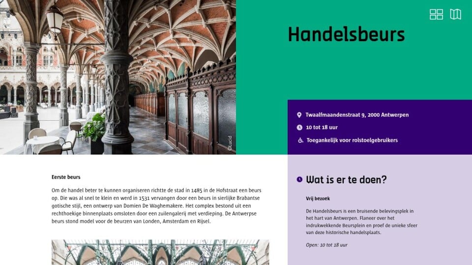De Handelsbeurs is een bruisende belevingsplek in het hart van Antwerpen. Flaneer over het indrukwekkende Beursplein en proef de unieke sfeer van deze historische handelsplaats.