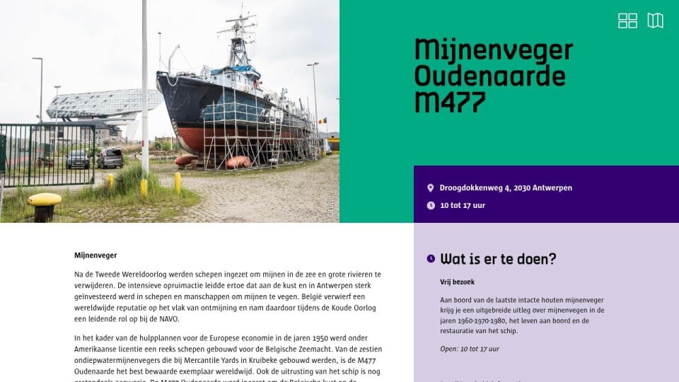 Aan boord van de laatste intacte houten mijnenveger krijg je een uitgebreide uitleg over mijnenvegen in de jaren 1960-1970-1980, het leven aan boord en de restauratie van het schip.