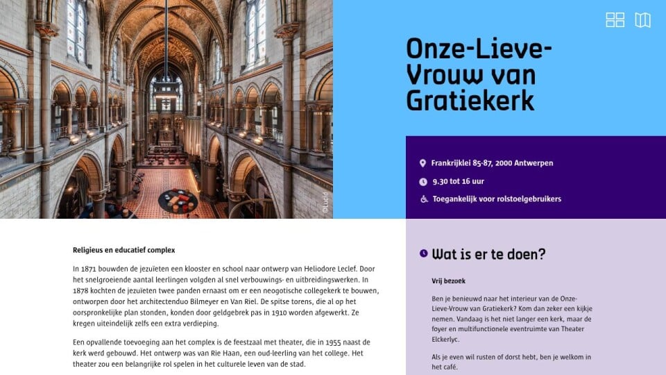 Wil je graag meer weten over de geschiedenis van de Onze-Lieve-Vrouw van Gratiekerk en hoe ze werd omgevormd tot theaterfoyer en multifunctionele eventruimte? Schrijf je dan in voor een rondleiding.