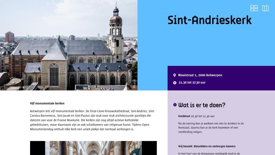Antwerpen telt vijf monumentale kerken. De Onze-Lieve-Vrouwekathedraal, Sint-Andries, Sint-Carolus Borromeus, Sint-Jacob en Sint-Paulus zijn stuk voor stuk architecturale pareltjes die dateren van voor de Franse Revolutie. Die kerken zijn nog altijd actieve katholieke gebedshuizen, maar daarnaast zijn ze ook schatkamers van religieuze kunst. Tijdens Open Monumentendag onthult elke kerk een uniek plekje dat normaal verborgen is.