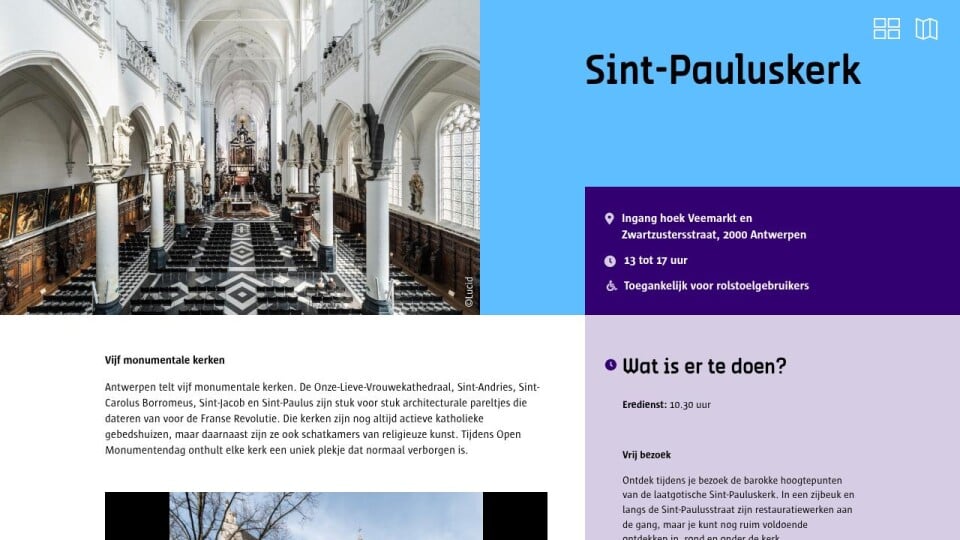 Antwerpen telt vijf monumentale kerken. De Onze-Lieve-Vrouwekathedraal, Sint-Andries, Sint-Carolus Borromeus, Sint-Jacob en Sint-Paulus zijn stuk voor stuk architecturale pareltjes die dateren van voor de Franse Revolutie. Die kerken zijn nog altijd actieve katholieke gebedshuizen, maar daarnaast zijn ze ook schatkamers van religieuze kunst. Tijdens Open Monumentendag onthult elke kerk een uniek plekje dat normaal verborgen is.