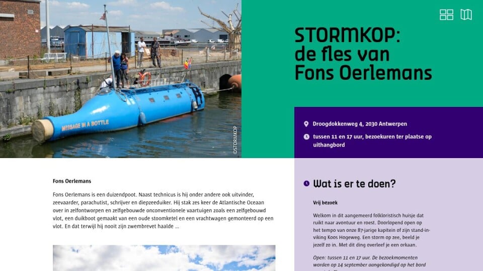 Na de reis werd de fles terug naar Antwerpen verscheept. Het echtpaar bleef er nog twaalf jaar in wonen. Het bijzondere vaartuig trok de aandacht van STORMKOP. Die organisatie ademt net als de fles avontuur. Een gezond antigif tegen de extreme ‘pas op’- en ‘wees voorzichtig’-maatschappij van vandaag. Kinderen en jongeren leren in deze ‘school voor avontuur’ te geloven in hun dromen.