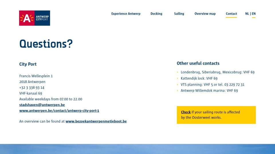 › VTS planning: VHF 5 or tel. 03 229 72 31