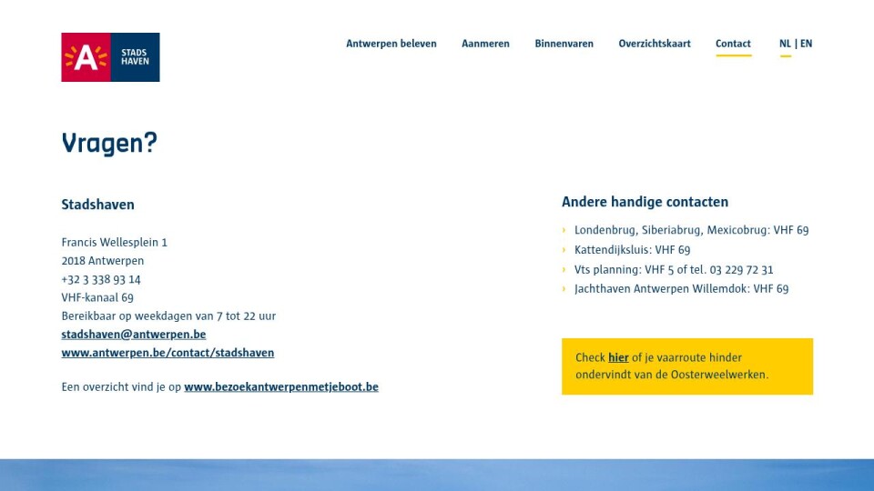 › Jachthaven Antwerpen Willemdok: VHF 69